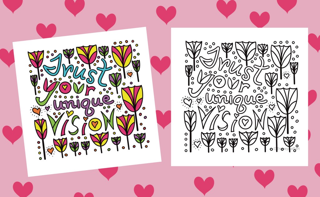 books and my new coloring book, plus, inspirational photos from my walks in nature.